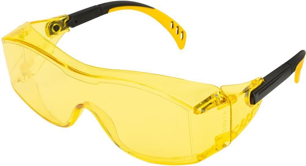Очки защитные открытые Denzel 89202 с увеличенными поликарбонатными желтыми линзами предназначены для защиты глаз от механических повреждений и УФ-излучения. Очкам присвоен класс механической прочности F, они обеспечивают защиту от высокоскоростных частиц с низкоэнергетическим ударом (скорость частиц до 45 м/с). Легкие универсальные очки используются во время работы с электро- и бензоинструментом, на производстве и в быту.ПреимуществаВысокие эксплуатационные свойства — линзы из высокопрочного поликарбоната имеют оптический класс 1 и подходят для длительного ношения.Отличная видимость — высокотехнологичное двустороннее покрытие линз предотвращает их запотевание.Долговечность — очки устойчивы к поверхностному разрушению при попадании мелкодисперсных аэрозолей.Продуманная конструкция — особая форма линз обеспечивает боковую и надбровную защиту, а также позволяет носить защитные очки вместе с коррригирующими.Комфортная посадка — двухкомпонентные дужки регулируются по длине и углу наклона.