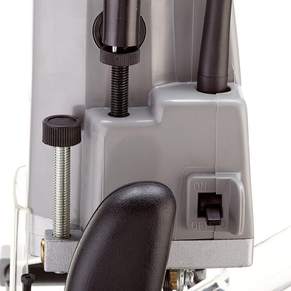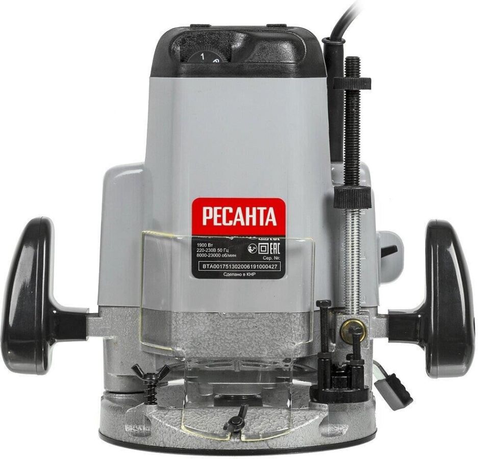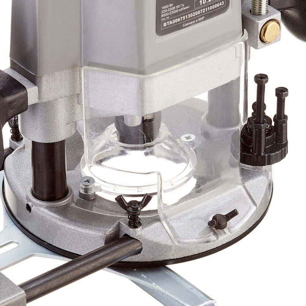 Тип фрезера - универсальный. Мощность - 1900Вт. Макс. обороты - 23000об/мин. Рабочий ход фрезы - 50мм. Цанга - 6/8мм. Возможность подключения к пылесосу, поддержание постоянного количества оборотов, блокировка шпинделя, электронная регалировка числа оборотов, в комплекте идет копировальная втулка.