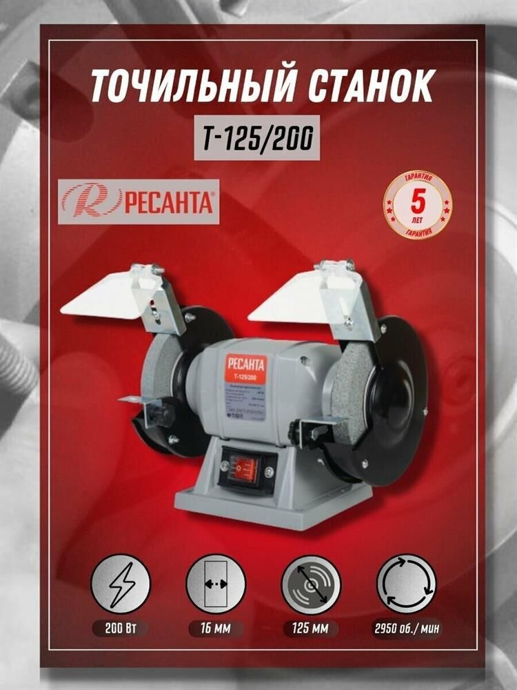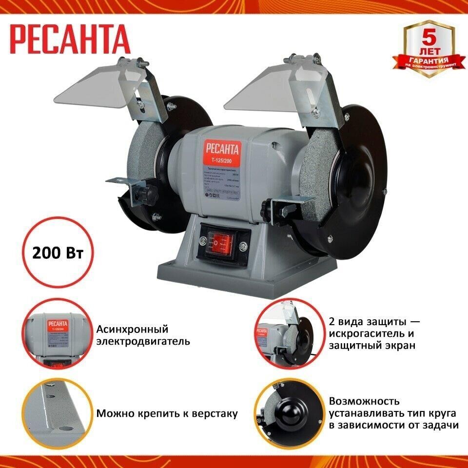 - Металлический корпус. - 2 вида защиты — искрогаситель и защитный экран. - Возможность устанавливать тип круга в зависимости от задачи. - Асинхронный электродвигатель. - Возможность крепления к верстаку. - Компактный. Напряжение сети 220-230В / 50 Гц Номинальная мощность 200 Вт Частота вращения 2950 об / мин Размер круга 125х16 мм Посадочный диаметр круга 12,7 мм Вес, нетто 4,5 кг