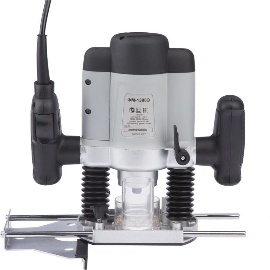 Тип фрезера - универсальный. Мощность - 1300Вт. Макс. обороты - 30000об/мин. Рабочий ход фрезы - 50мм. Цанга - 6/8/12мм. Возможность подключения к пылесосу, поддержание постоянного количества оборотов, блокировка шпинделя, электронная регалировка числа оборотов, в комплекте идет копировальная втулка.