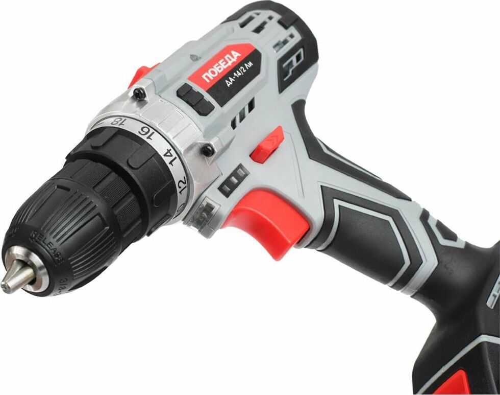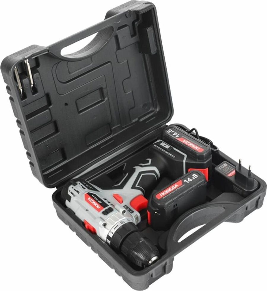 Тип аккумулятора: Li-ion • Напряжение аккумулятор: 14.4 В • Емкость аккумулятор: 2.2 А/ч • Тип патрона: быстрозажимной • Макс. размер зажимаемой оснастки: 10 мм • Количество скоростей: 2 -- 1 скорость: 0-400 об/мин -- 2 скорость: 0-1490 об/мин • Число ступеней крутящего момента: 18+1 • Мягкий крутящий момент: 29 Нм • Жесткий крутящий момент: 35 Нм • Регулировка скорости: есть • Наличие реверса: есть • Блокировка шпинделя: есть • Наличие подсветки: есть • Прорезиненная рукоятка: есть • Время зарядки аккумулятора: 1 час • Система защиты аккумулятора: есть • Кол-во аккумуляторов в комплекте: 2 • Гарантия: 1 год • ВхШхГ упаковки: 22х25,5х9,5 • Вес брутто упаковки: 1,9 кг • Объем упаковки: 0,005330 куб. м • Комплект поставки: дрель-шуруповерт аккумуляторная, аккумулятор: 2 шт., зарядное устройство, двустороняя бита, кейс, инструкция