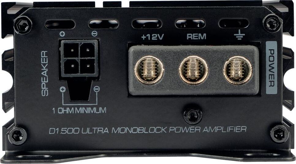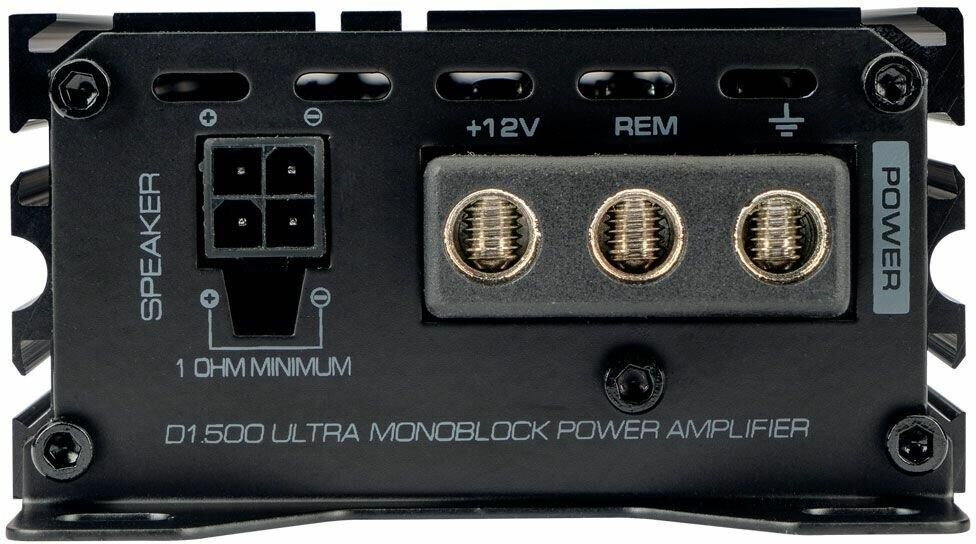 1-канальный усилитель мощности Ультра-компактный дизайн Класс D Номинальная мощность 4Ω (RMS): 1×220 ватт Номинальная мощность 2Ω (RMS): 1×350 ватт Номинальная мощность 1Ω (RMS): 1×500 ватт Диапазон воспроизводимых частот: 10-220Hz LPF (ФНЧ): 60-220Hz Соотношение сигнал/шум: >100dB Коэффициент нелинейных искажений: 0.05% Входная чувствительность: 10-0.2 вольта Hi-Level input (высокоуровневый вход) — прямое подключение, без конвертеров. Рабочее напряжение: 9-16 вольт Габариты: 146 x 78 x 40 mm