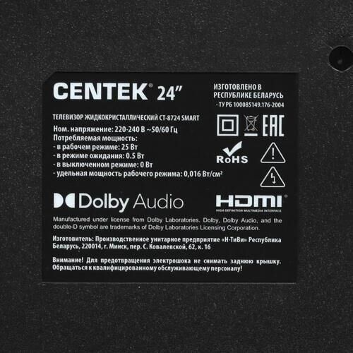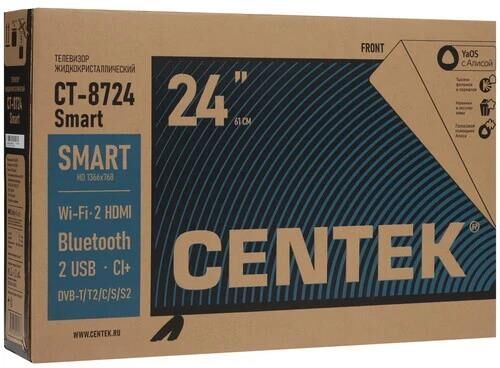 Диагональ 24’’ (HD ready). Разрешение 1366 х 768. Контрастность 3000: 1. Smart TV Есть. Яркость 200 кд/м2. Операционная система Android 9.0 (Yandex OS). Пульт ДУ С голосовым управлением. HDR Есть. Мощность 40 Вт. Мощность динамиков 2 Вт + 2 Вт. Угол обзора (L/R) 170/170. Крепление монтажа VESA 200 х 100. Входы и выходы 2хUSB, mini AV, CI, LAN, 2хHDMI, НАУШНИКИ, 2хRF, COAX. Функции CEC, Родительский контроль, Спящий режим. Особенности Dolby/dolby+ surround, Динамическое шумоподавление, Мультиэкран, Таймер сна.
