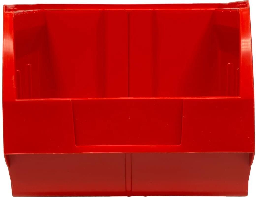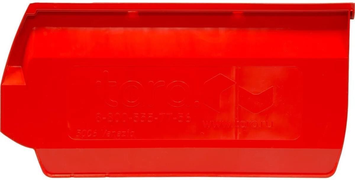 Ящик сплошной 500×310×250 мм, объем 38.75 л., арт.: 5006, красный универсальный складской контейнер, созданный для эффективной организации хранения и транспортировки метизов, крепежа, инструментов и других сыпучих или мелкоштучных изделий. Идеален для использования на производстве, в мастерских и на складах. Большой объем – 38.75 л: подходит для хранения объемных партий продукции. Ящик устойчив к нагрузкам, можно использовать на конвейерах и рольгангах. Зацеп для навешивания позволяет размещать ящик на специализированных стеллажах и держателях.