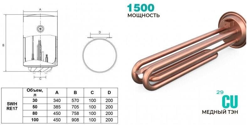 Системы защиты: от перегрева, УЗО, обратный клапан, предохранительный клапан, от включения без воды, Анод