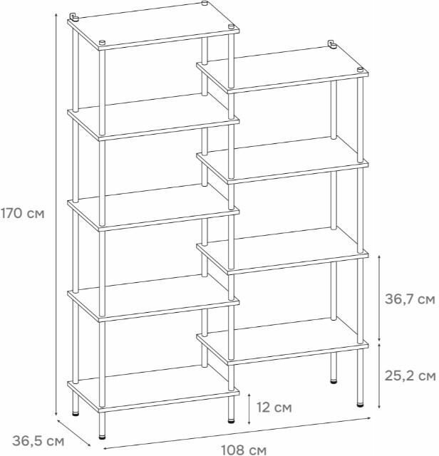 Назначение В помещении. Хранение одежды и предметов. Материал сталь, порошково-полимерное покрытие, пластик, ЛДСП. Максимальная нагрузка, кг до 25 кг. Уход Протереть влажной тряпочкой с мыльным средством. Температура применения, °C от 0 °C до +30 °C.Габариты (Д*Ш*В) — 108х36,5х169,5