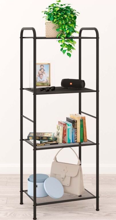 Назначение Для хранения вещей во внутренних помещениях. Материал сталь, порошково-полимерное покрытие, пластик. Габариты (Д*Ш*В) 45,5 х 30 х 120,5 см. Максимальная нагрузка, кг До 8 кг на полку. Уход Протереть влажной тряпочкой с мыльным средством.