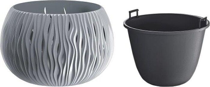 Кашпо для цветов Sandy Bowl является замечательным украшением садового интерьера, дома, зоны отдыха. Оно обладает повышенной стойкостью к высоким и низким температурам, а также к различным механическим повреждениям. Кашпо для цветов Sandy Bowl состоит из двух предметов: внутренней емкости, куда сажают растение, и декоративной емкости. • Комплектация: 2 предмета (внутренняя емкость + декоративная емкость) • Размер (ДМхВ): 238х161 мм • Объемы: 2,3 л • Цвет: серый • Материал: пластик • Вес брутто: 0,384 кг • Количество в упаковке: 5 штук • Производитель: Prosperplast • Страна: Польша