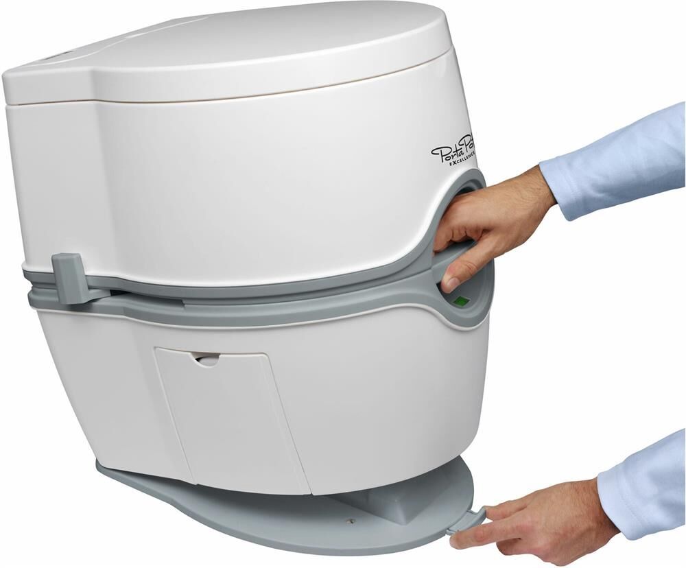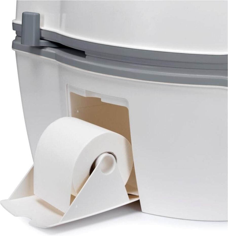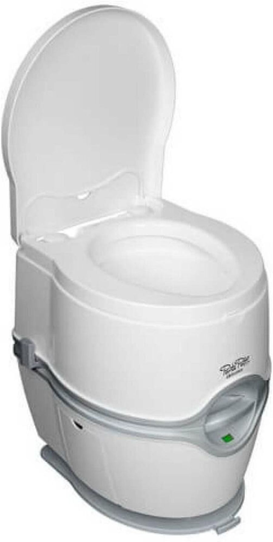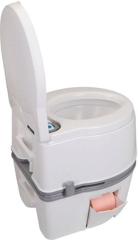 Электрический биотуалет Thetford Porta Potti 565 Electric - модель с эргономичным дизайном, высокой посадкой и инновационной конструкцией. Он состоит из двух секций: верхняя - система смыва, нижняя - емкость для стоков. Две части очень просто разъединить с помощью рычага, а туалетную жидкость можно налить через сливной патрубок. Особенностями биотуалета является оснащение электрической кнопкой смыва, встроенным бумагодержателем и индикаторами наполненности на двух бачках. Работа осуществляется с помощью 6 батареек АА 1,5 В, которых хватает на 500-700 смывов (батарейки в комплект не входят). • Размер: 44,8х38,8х45 см • Вес нетто: 5,015 кг •Объем сточного резервуара: 21 л • Объем резервуара для слива: 15 л •Высота сиденья: 44,3 см •Материал: пластик • Система смывания: электрическая • Индикатор уровня сточного резервуара: да • Индикатор уровня емкости для слива: да •Цвет: белый •Вес брутто: 6,123 кг • Размер коробки: 45,3x40x46,7 см • Объем коробки: 0,088 м3 • Производитель: Thetford • Страна: Китай