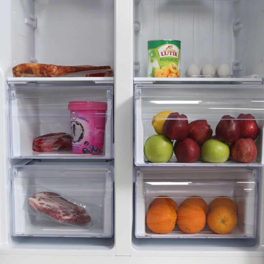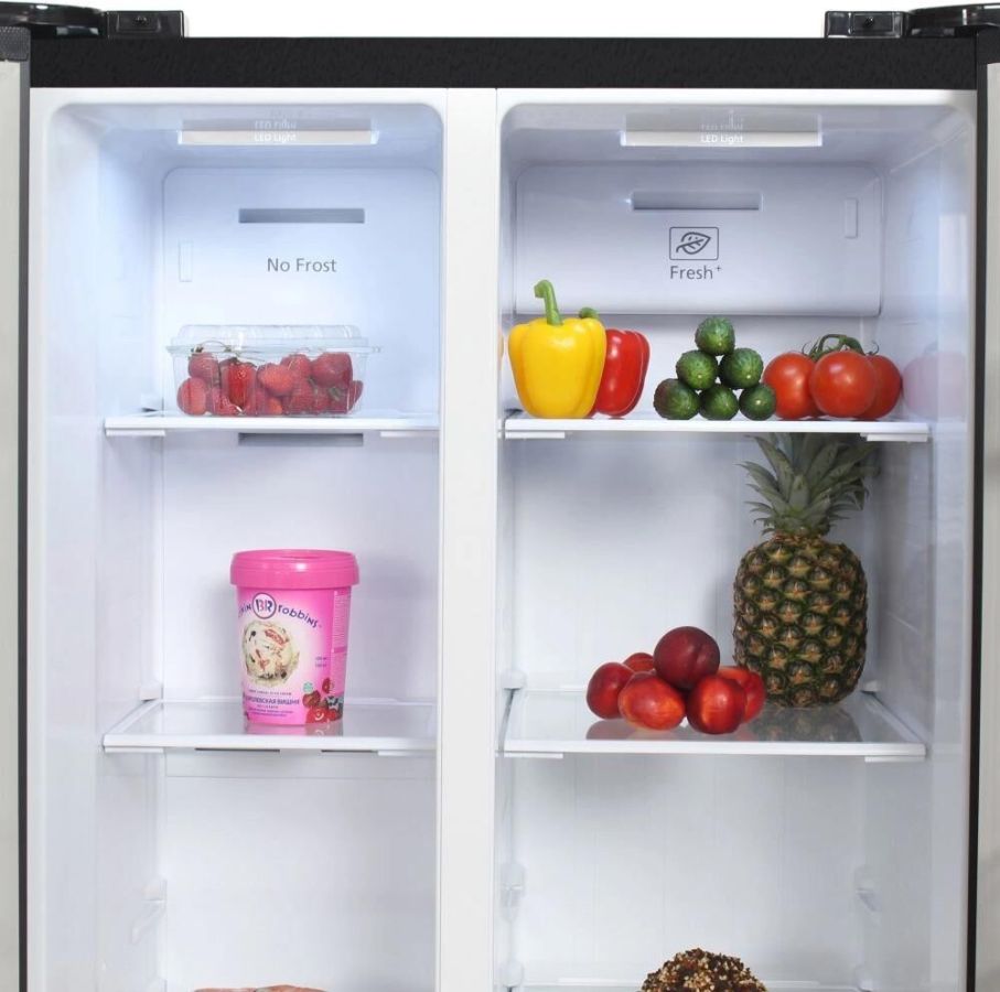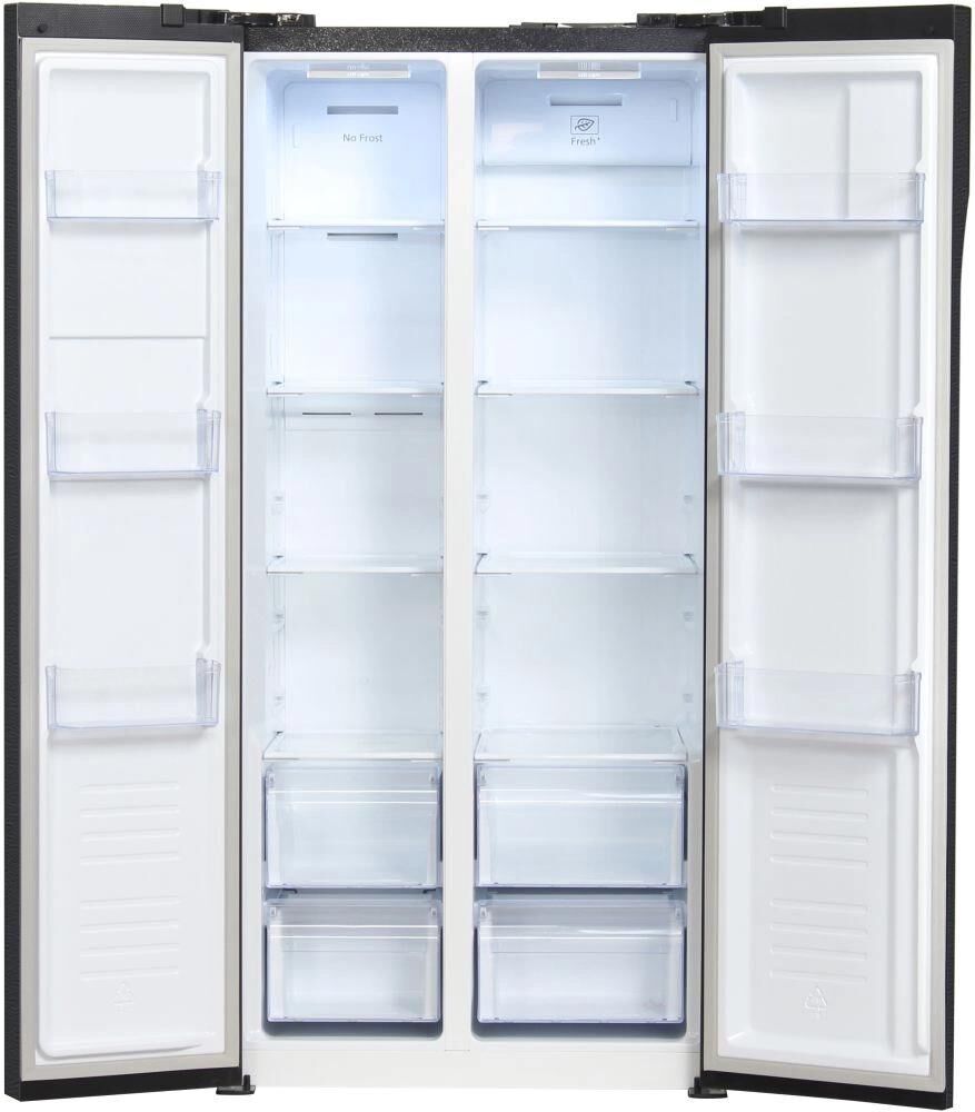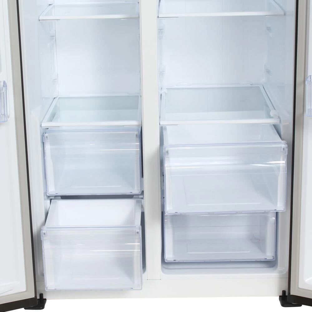 Холодильник Side-by-Side. Полезный объём: 436 л. Полезный объем холодильной камеры: 271л. Полезный объем морозильной камеры: 165л. Система размораживания Total Nofrost. Тип управления: сенсорное управление (внешний дисплей). Уровень шума 43dB(A). Класс энергопотребления: А+. Цвет: нержавеющая сталь. Габаритные размеры без упаковки в*ш*г, см: 178.0*91.1*63.6. Вес нетто/брутто : 91/101. Гарантия 2 года