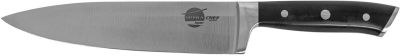SUPRA SK-C201 Нож кухонный шеф из нержавеющей стали Японская технология изготовления ножей Японская нержавеющая сталь SS 420J2 Цельнокованый клинок Двусторонняя заточка лезвий Длина лезвия: 200 мм Длина рукояти: 125 мм Материал рукояти: АБС пластик Можно мыть в посудомоечной машине