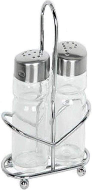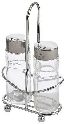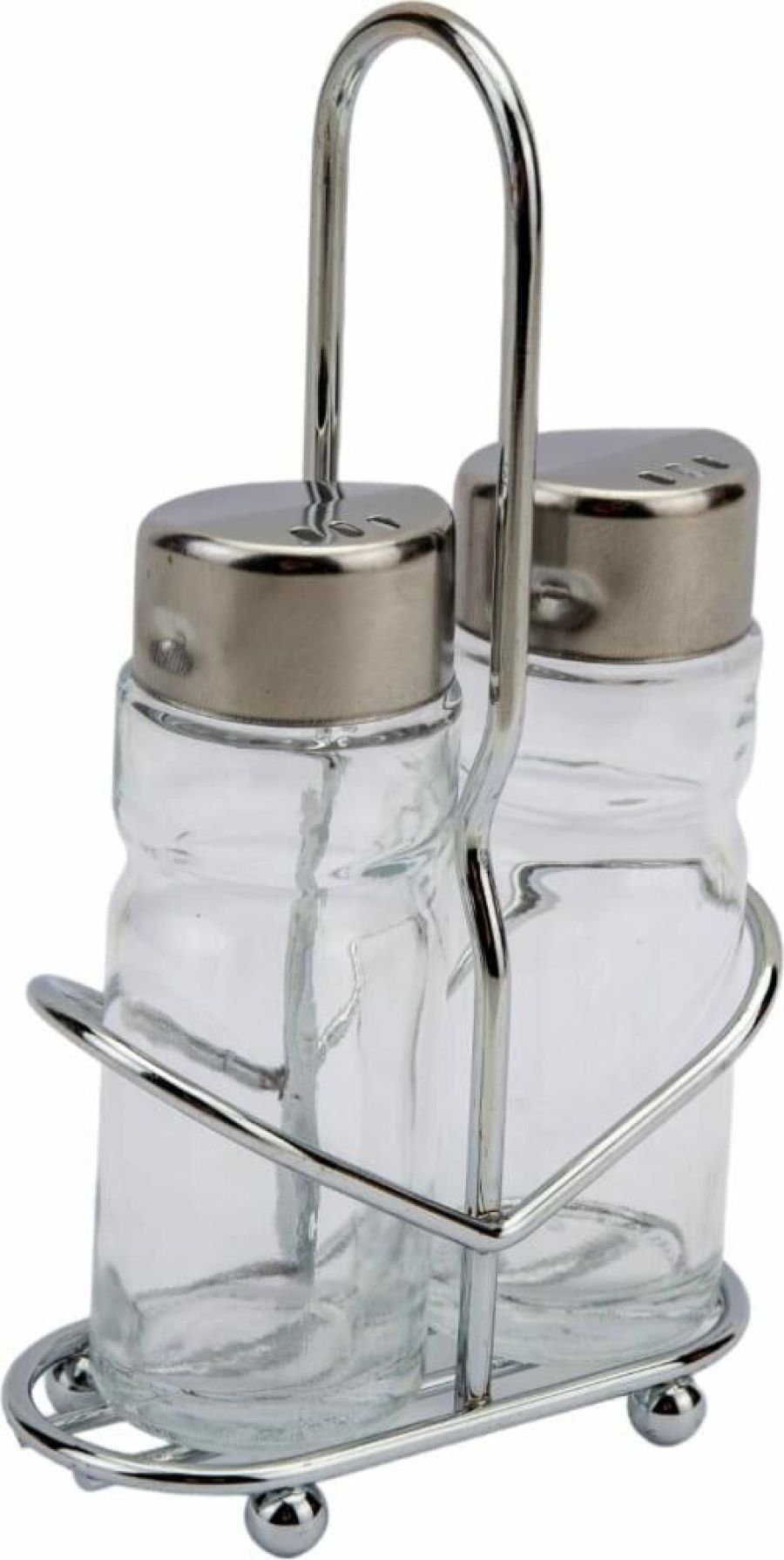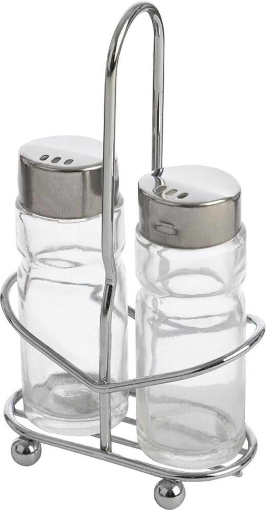 Набор из 3 предметов SPEZIA: солонка 40мл и перечница 40мл на подставке (стекло, нерж сталь) Набор из 3 предметов: солонка и перечница, объем: 2*40 мл, на подставке с крышками из нержавеющей стали. Размер 1 баночки: 9 см (высота)*3 см (ширина) вес: 141 гр, высота набора с подставкой: 14,3 см, высота без подставки 9 см. толщина стекла: 2,43 мм, толщина стали крышки:0,38 мм Материал: натрий-кальций-силикатное стекло, нерж. сталь Инд. упаковка: термоусадка и стикер.