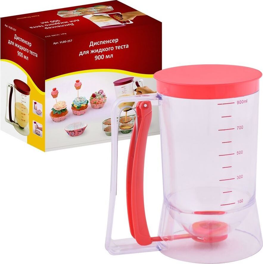 Диспенсер для жидкого теста. 900мл VL80-257 Материал: Пластмасса (PP, PS), Силикон, Металл (Нержавеющая сталь)
