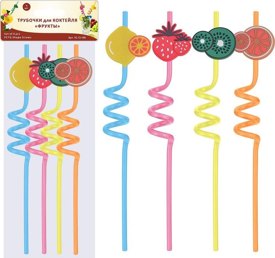 Трубочки для коктейля "Фрукты" 4 шт. 26см VL13-160 Материал: Пластмасса (PETG), Резина (TPR)