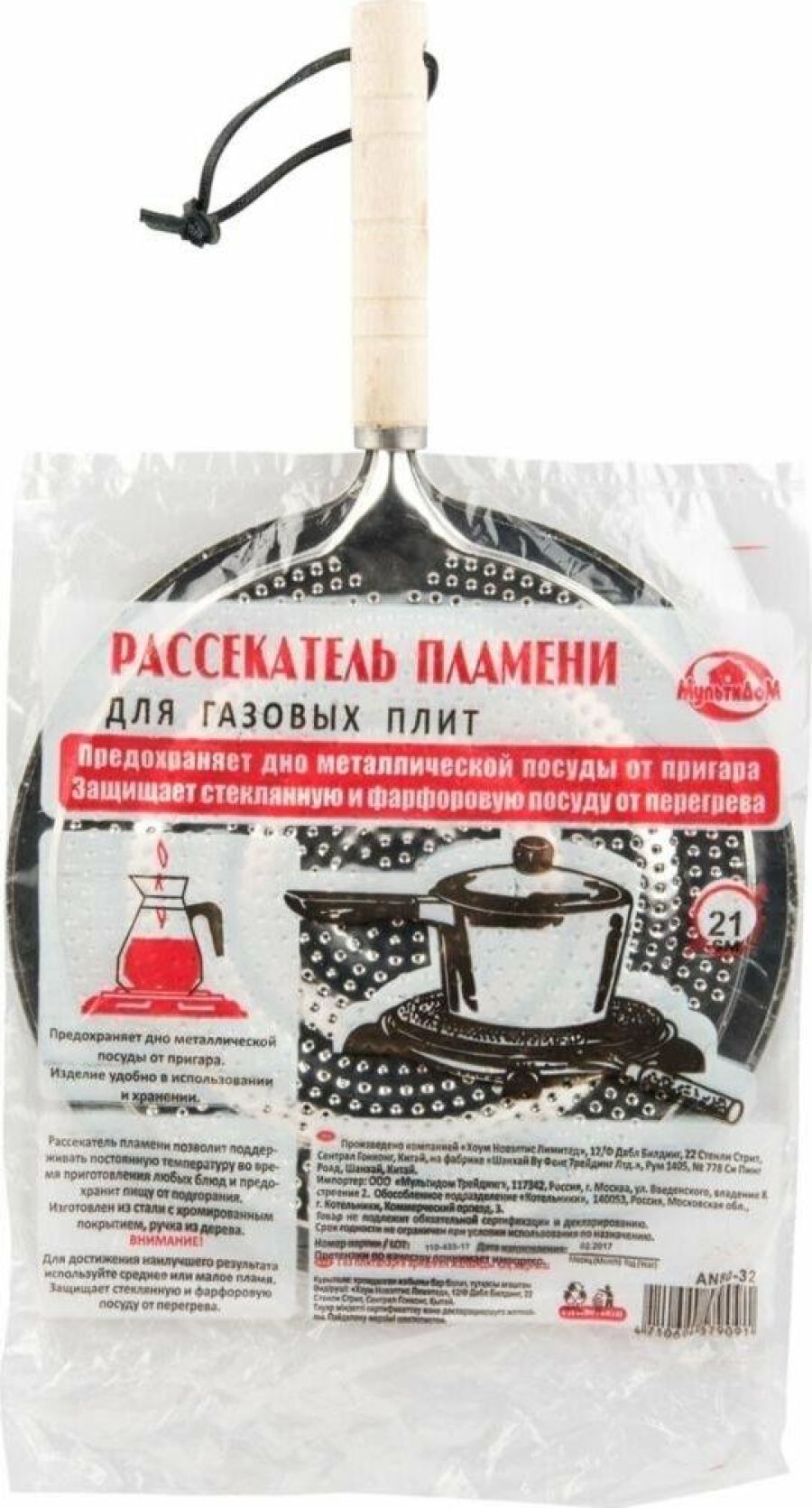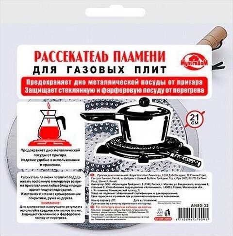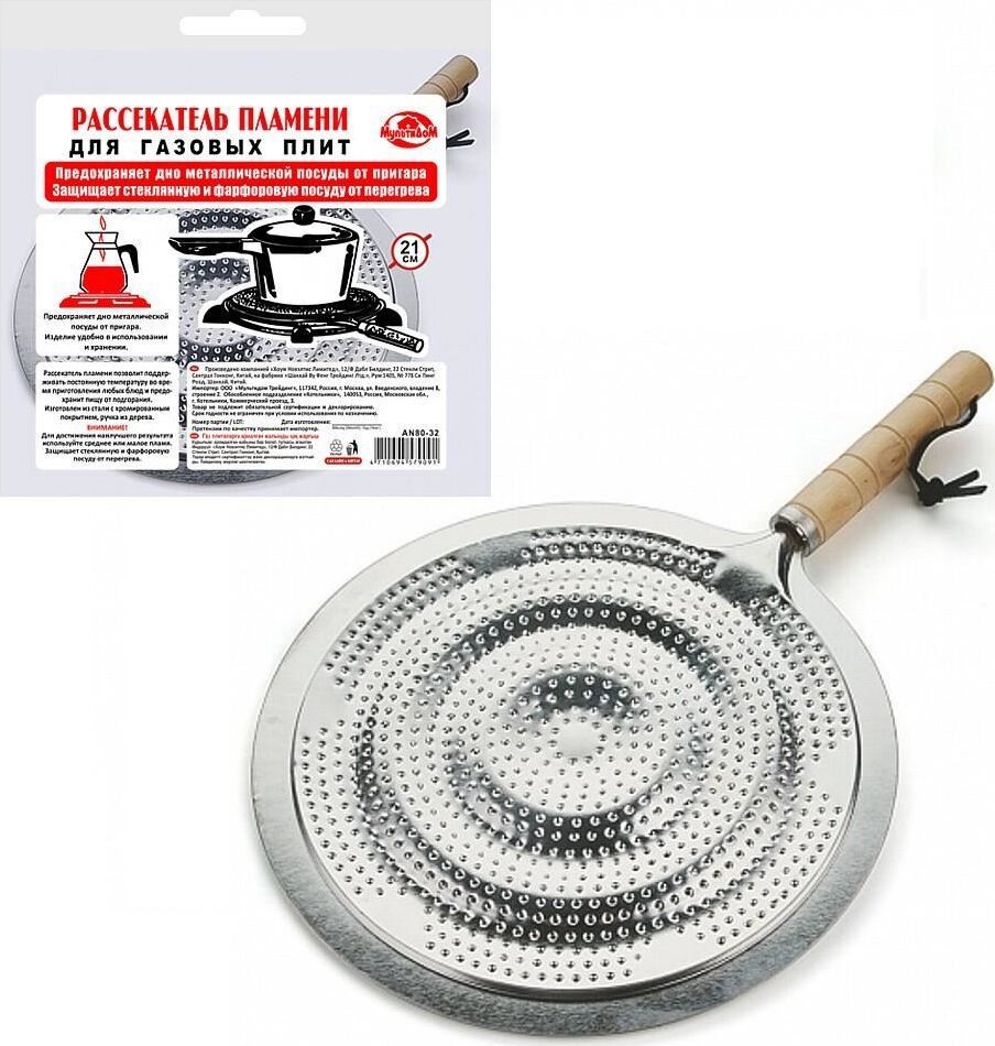 Рассекатель пламени д/газов. плит (с ручкой) d21см AN80-32 Материал: Металл (Сталь хромированная), Дерево Диаметр 21см.