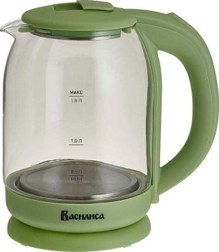 Максимальная мощность 2200 Вт Максимальный объем 1,7 литра Корпус из высокопрочного термостойкого стекла Внутренняя подсветка Автоотключение при закипании воды Отключение при отсутствии воды Противоскользящее основание Электропитание 220-240 В, ~ 50-60 Гц