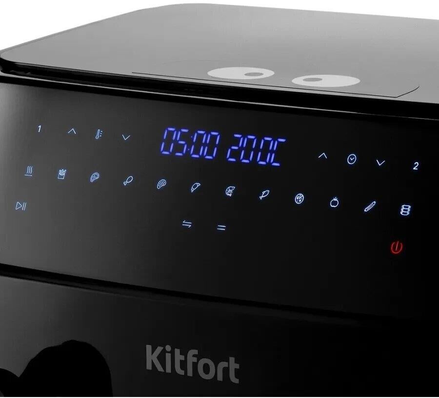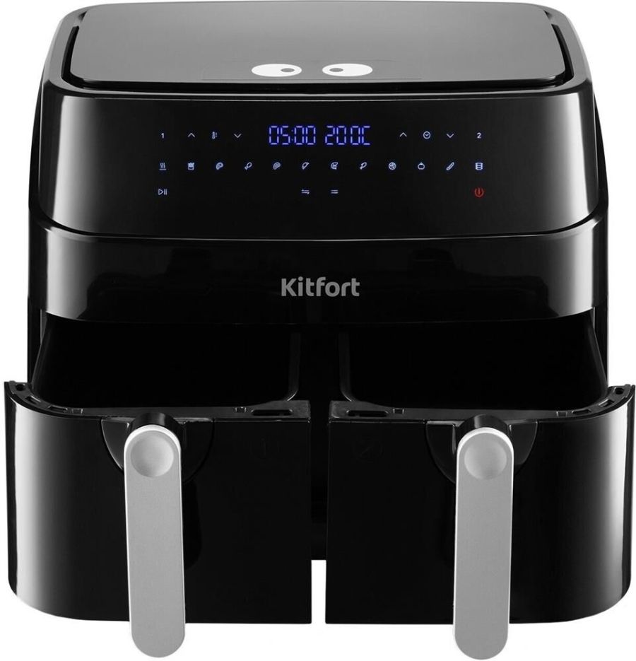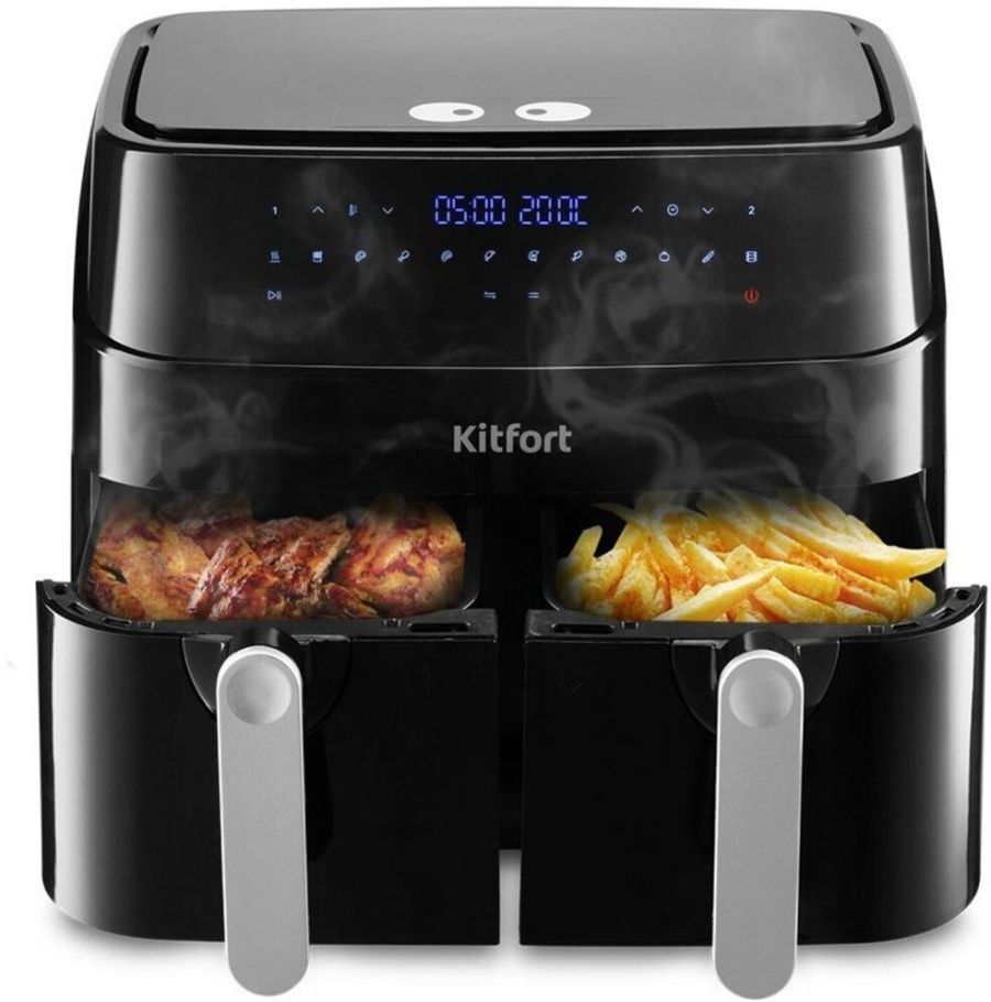 Мощность 1450-1750 Вт. Ёмкость поддонов 9 л (2 х 4,5 л). Количество программ приготовления 12. Температура 50-200°С с шагом 10°С. Таймер 1-60 мин с шагом 1 мин. Уровень шума до 50 дБ. Управление сенсорное. Длина шнура 1 м. Размер устройства 404 х 371 х 328 мм.