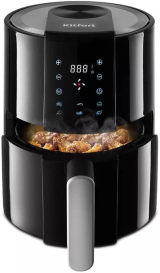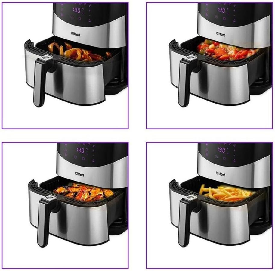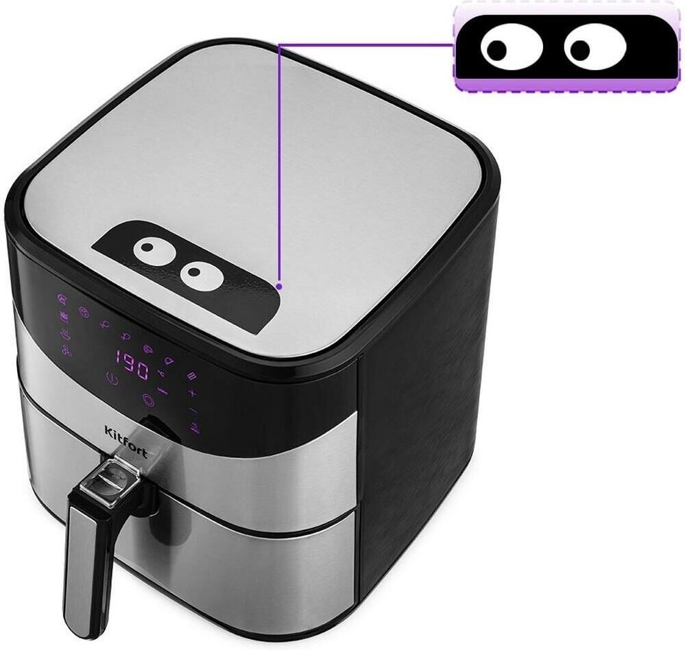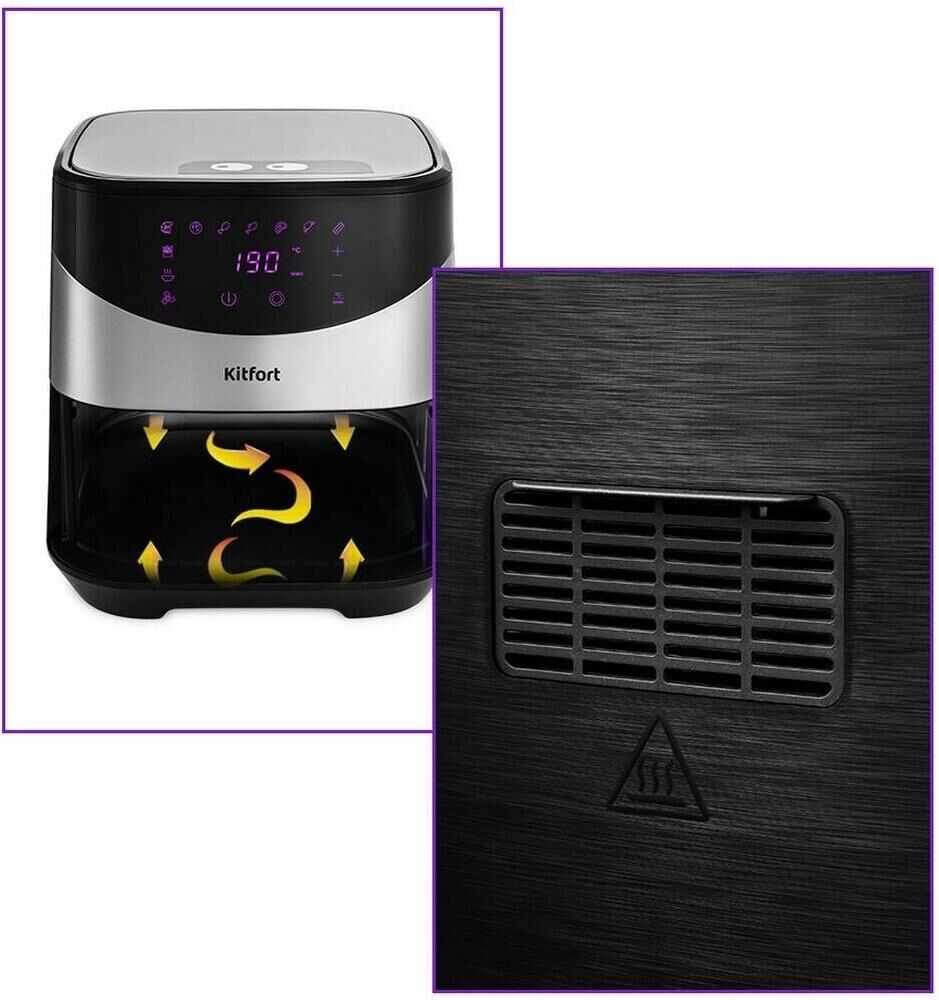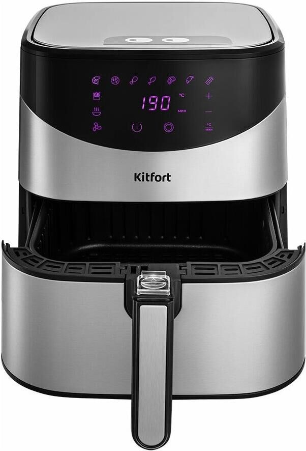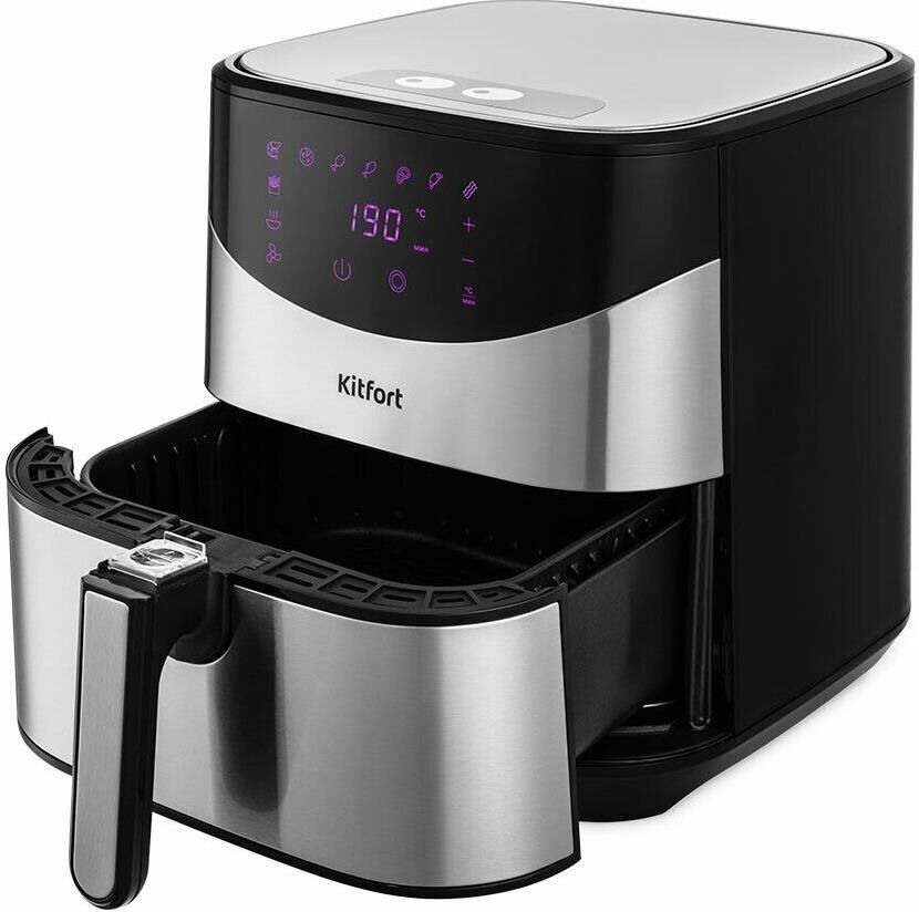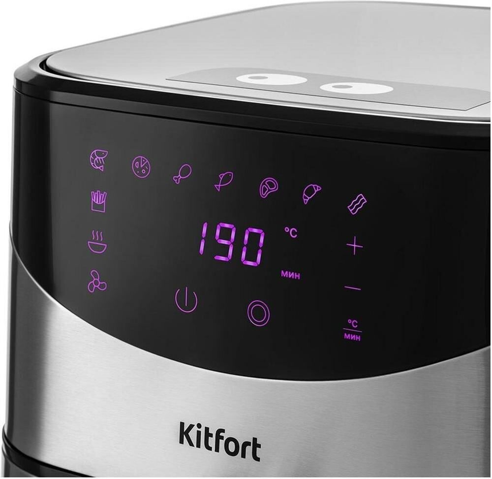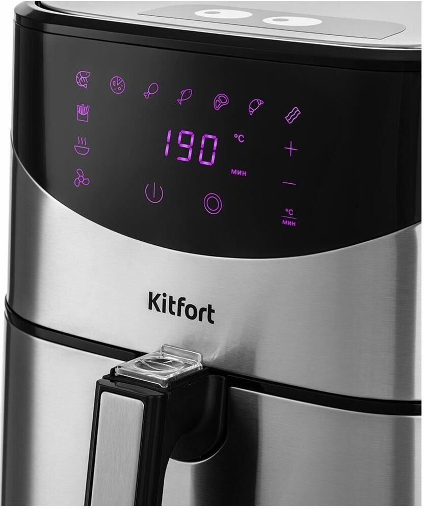 Мощность 1700 Вт. Длина шнура 1 м. Объём 5 л. Количество программ приготовления 9 + ручные настройки. Регулировка температуры от 80 °C до 200 °C с шагом 5 °C. Таймер от 1 до 60 мин с шагом 1 минута. Управление сенсорное. Размер устройства 315 х 378 х 323 мм.