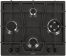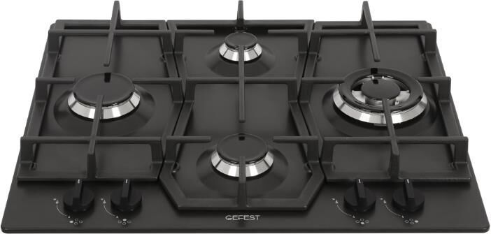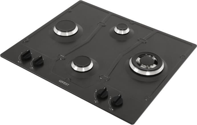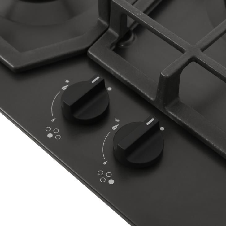 Габариты ШхВхГ, см: 60х10х51,5; Размеры монтажного проема, ШхГ, см: 56 х 48,6; Цвет: Черный; Тип подключения: Газовый; Количество зон приготовления: 4; Материал варочной поверхности: Эмаль; Материал решеток варочной поверхности: Чугун; Двухзонная горелка варочной поверхности; Газ-контроль горелок стола; Электророзжиг горелок стола: Розжиг встроен в ручки; Управление конфорками стола: Механическое; "Фиксированное положение "малое пламя"; Диапазон номинального напряжения сети, В: 220-230; Номинальная частота сети, Гц: 50; Комплект сменных сопел; Решетка варочной поверхности: 3; Уплотнительная лента: 1; Фильтр: 1