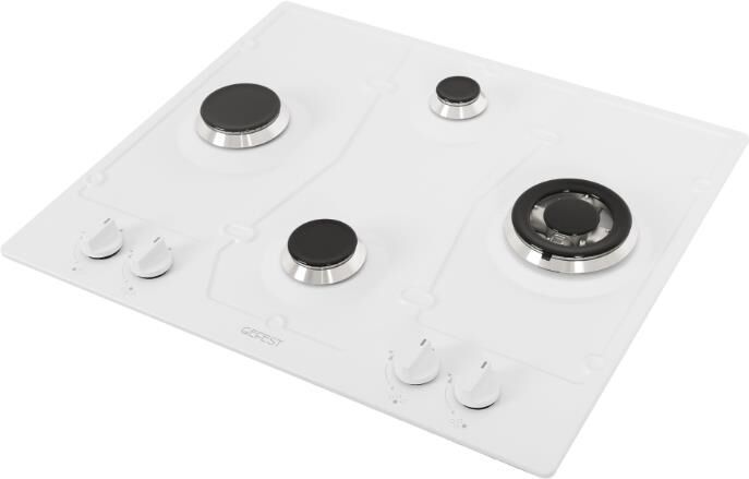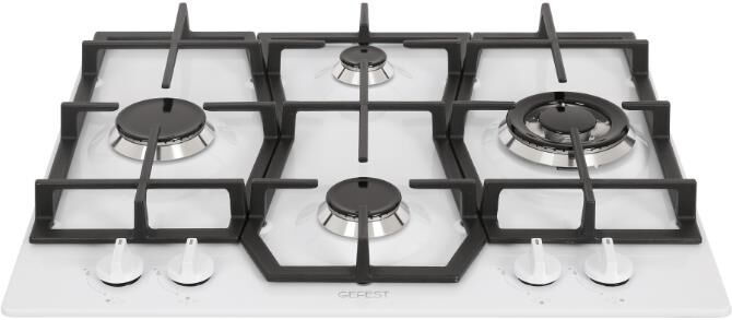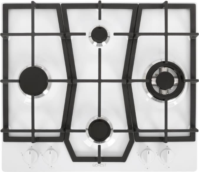 Габариты ШхВхГ, см: 60х10х51,5; Размеры монтажного проема, ШхГ, см: 56 х 48,6; Цвет: Белый; Тип подключения: Газовый; Количество зон приготовления: 4; Материал варочной поверхности: Эмаль; Материал решеток варочной поверхности: Чугун; Двухзонная горелка варочной поверхности; Газ-контроль горелок стола; Электророзжиг горелок стола: Розжиг встроен в ручки; Управление конфорками стола: Механическое; "Фиксированное положение "малое пламя"; Диапазон номинального напряжения сети, В: 220-230; Номинальная частота сети, Гц: 50; Комплект сменных сопел; Решетка варочной поверхности: 3; Уплотнительная лента: 1; Фильтр: 1
