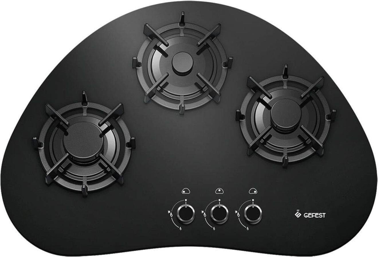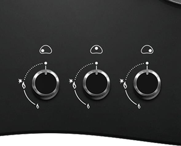 Габариты (ВхШхГ) 10,2х73,3х50см. 3 конфорки. Переключатели поворотные. Электророзжиг от отдельной кнопки. Фиксированное положение «малое пламя». Система «газ-контроль». Варочная поверхность: черная стеклянная. Чугунные решетки стола.