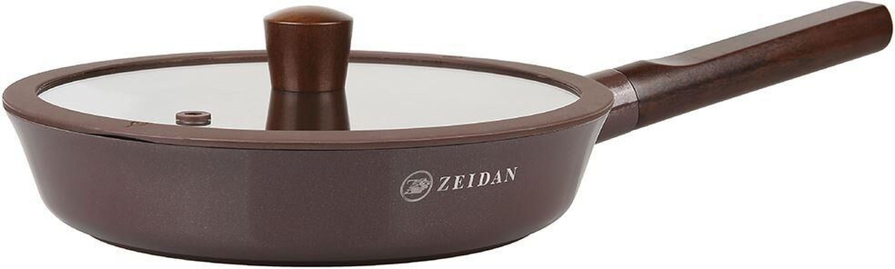 Сковорода со стеклянной крышкой – d 26х5.5 см, литой алюминий, деревянная ручка, крышка - стекло с силиконовым ободком и деревянной ручкой, ИНДУКЦИОННОЕ ДНО, ВНУТРЕННЕЕ АНТИПРИГАРНОЕ ПОКРЫТИЕ, ВНЕШНЕЕ ЖАРОПРОЧНОЕ ПОКРЫТИЕ.