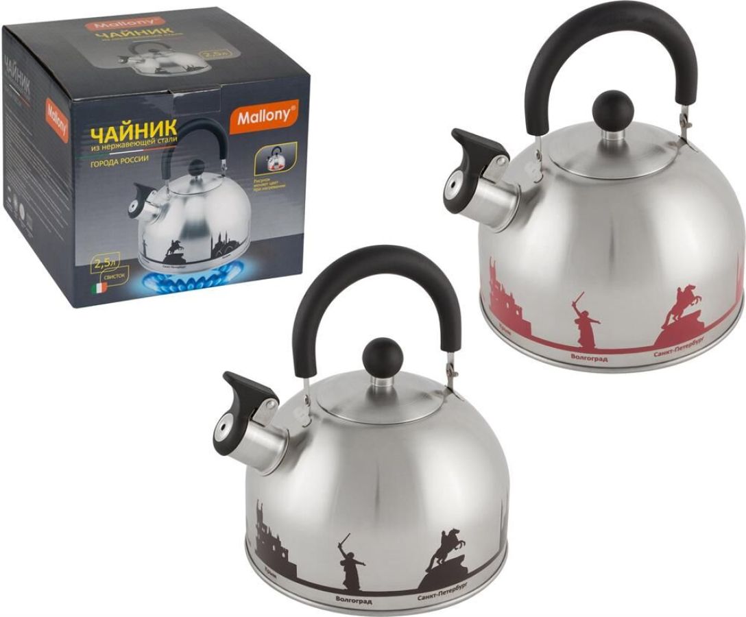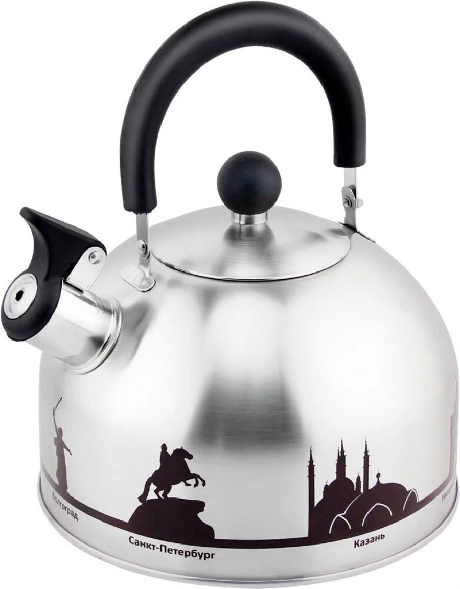 Благодаря серебристому стильному корпусу чайник смотрится эстетично на любой кухне. Изделие вмещает в себя 2.5 л, имеет высокопрочный корпус, материалом изготовления которого послужила нержавеющая сталь. Чайник оснащен эргономичной пластиковой ручкой, которая выдерживает высокую температуру и не нагревается. Дополнительным устройством в его конструкции является свисток, который сообщит о готовности воды. Энергосберегающее дно будет поддерживать температуру, благодаря чему вода не остынет достаточно долго.