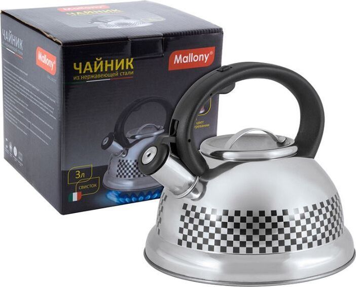 Чайник из нерж. стали 201 с рисунком, меняющим цвет при нагревании Объем -3,0 литра Материал — нержавеющая сталь, толщина — 0,4 мм Полированный, внутри — матовый. Капсулированное 3-х слойное дно. Стальная крышка Ручка — бакелит Со свистком Подходит для всех типов плит. Не рекомендуется мыть в посудомоечной машине. Упаковка — индивидуальная цветная коробка Рисунок на чайнике меняет цвет при нагревании.
