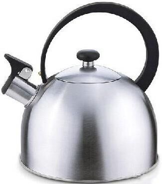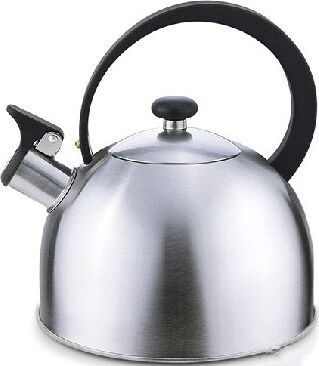 Чайник из нержавеющей стали № 201 со свистком с крышкой, с ручкой из нейлона, матовый внутри/матовый - снаружи, дно - одинарное, подходит для всех типов плит, толщина стали - 0.3-0,35 мм, литраж - 2,5 литра, упаковка - цветная коробка. Модель - "Opera" Материалы - нержавеющая сталь, нейлон. Не рекомендуется мыть в посудомоечной машине.