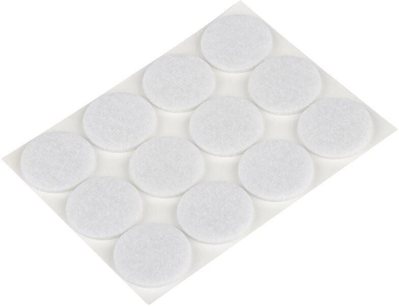 В упаковке: 12 шт Размер: 28х3мм Материал: 100% полиэстер, Цвет: белый упаковка: пакет+хеддер Предназначены для защиты полов из любого покрытия от сколов, царапин, потертостей, делает мебель более устойчивой.
