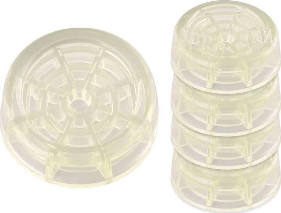 Антивибрационные подставки для стиральных машин и холодильников (круг. прозрач.) d 6см, h2см МТ76-134 Материал: Пластмасса (PVC). Способ применения: отрегулировать горизонтальное положение стиральной машины или холодильника. Подложить под каждую ножку по 1 антивибрационной подставке. Количество в комплекте: 4 шт.