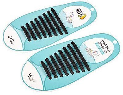 Плоские эластичные шнурки, комплект из 16 штук 8 шт разного размера для каждой ноги материал - силикон цвет черный Упаковка: пакет + хеддер