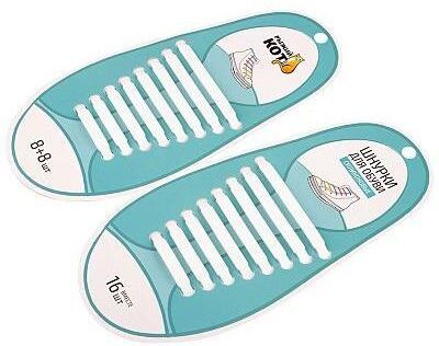 Плоские эластичные шнурки, комплект 16 штук 8 шт разного размера для каждой ноги материал - силикон цвет белый Упаковка: пакет + хеддер