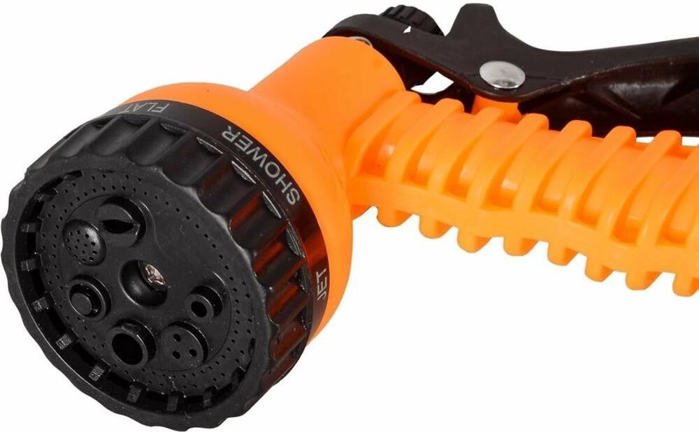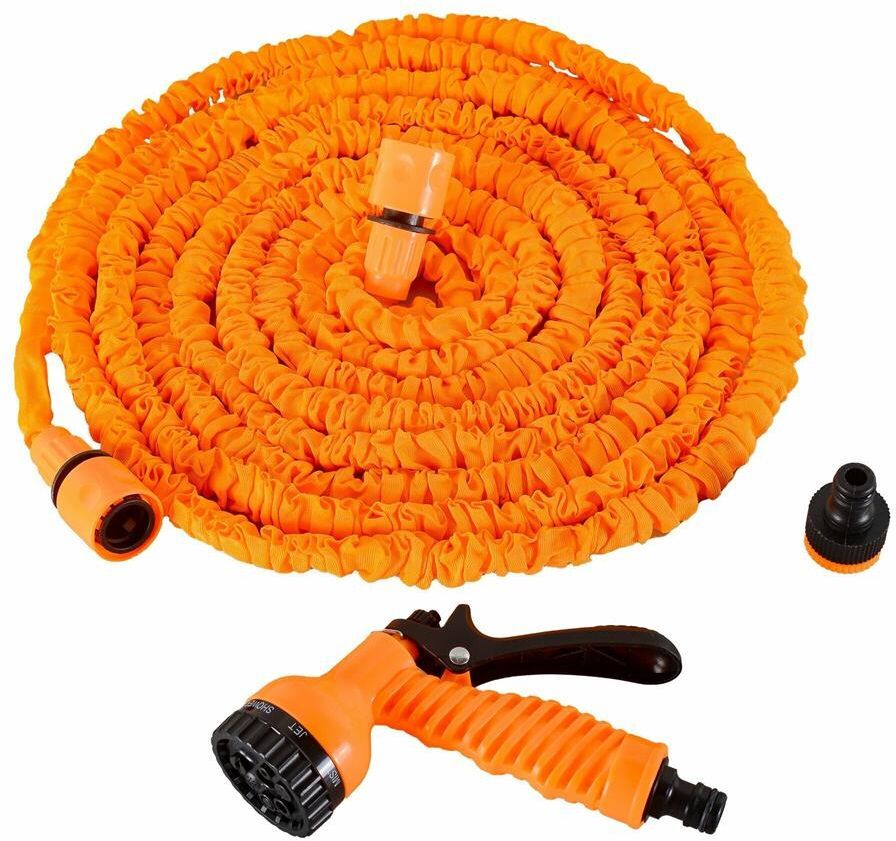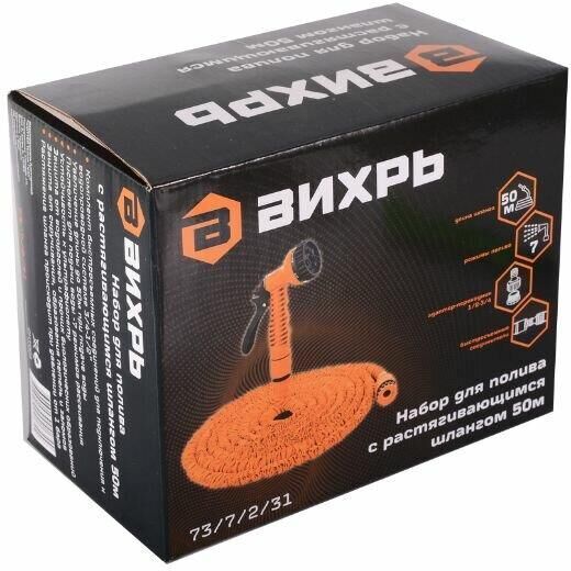 Набор для полива с растягивающимся шлангом 50м Вихрь 73/7/2/31 подходит для орошения дачных и садовых участков. Комплектуется пистолетом-распылителем с 7 режимами. Шланг из прочного латекса может сжиматься и растягиваться, что удобно при поливе и хранении.