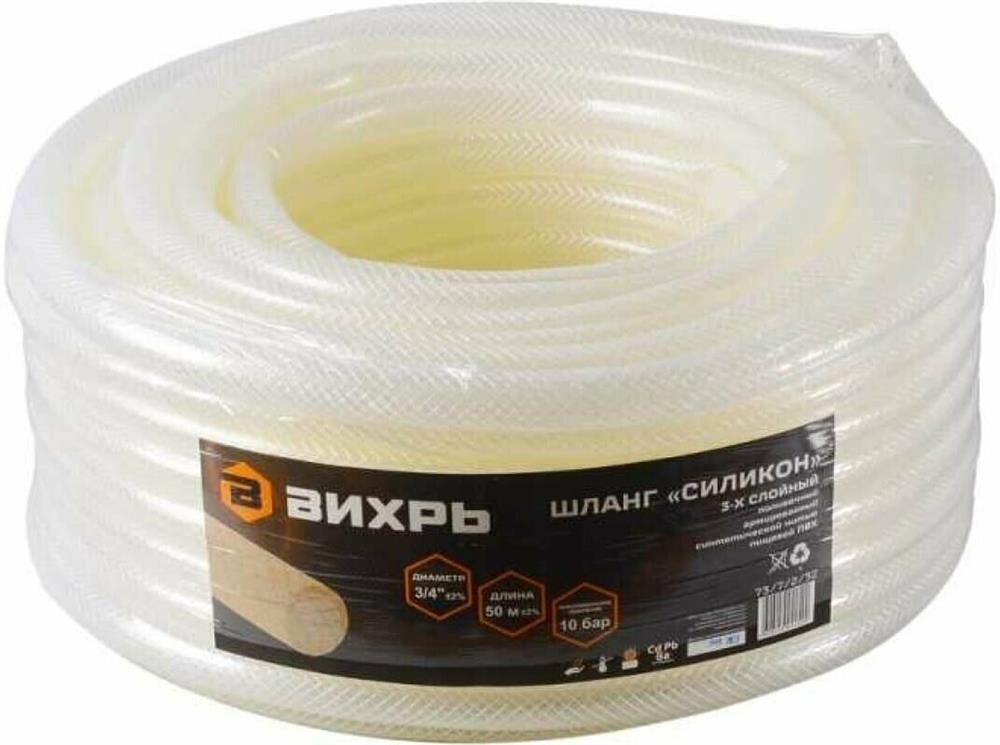 Шланг поливочный "Силикон" трёхслойный армированный 3/4", 50м (прозрачный) Вихрь