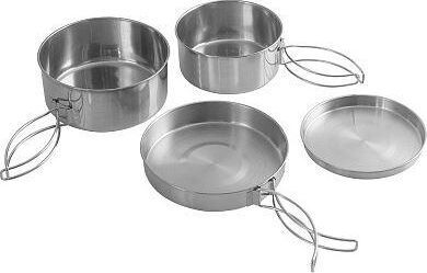 Материал: нержавеющая сталь 304, толщина металла 0,4 мм (всех элементов) В набор входит: - Кастрюля маленькая (Размер: 12.4*6см, объём: 590мл); - Крышка маленькая (Размер: 13.2*1.4см, объём: 150мл); - Большая кастрюля (Размер: 14.3*6.3см, объём: 900мл); - Большая крышка (Размер: 14.8*2.8см, объём: 430мл). - Идеально подходит для походов, пикников и кемпинга - Удобен в хранении и транспортировке - Складные ручки на кастрюлях - Высококачественная нержавеющая пищевая сталь - Возможность не только готовить, но и есть из посуды
