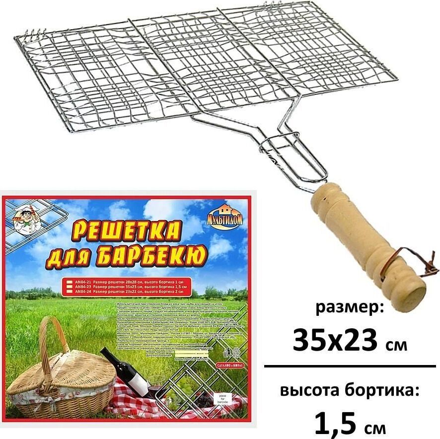 Решетка д/барбекю "Отдых" 35x23x1,5 см AN84-23 Материал: Металл (Сталь хромированная), Дерево
