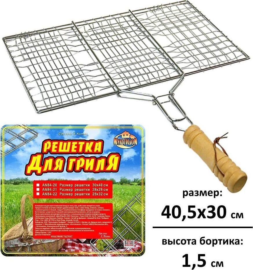Решетка д/барбекю "Отдых" 30x40x1,5см AN84-20 Материал: Металл (Сталь хромированная), Дерево