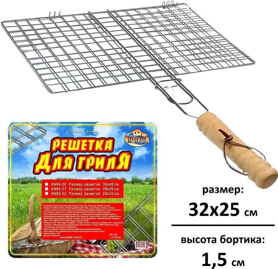 Решетка д/барбекю "Отдых" 25x32x1,5 см AN84-22 Материал: Металл (Сталь хромированная), Дерево