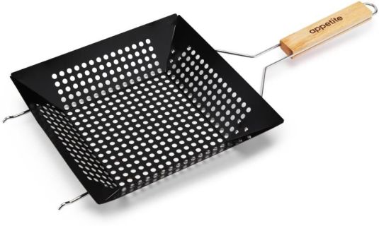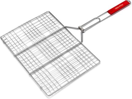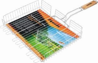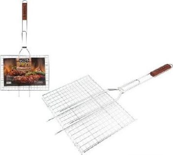 Материалы: решетка - хромированная сталь, деревянная ручка Размер: 31x24x1.5см, общая длина: 50см Толщина прутьев: 3.5мм, 2.5мм, 1.5мм