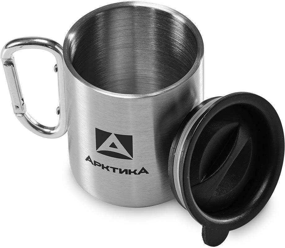 Термокружка невакуумная с двойными стенками, с крышкой для защиты от пыли, объем 300 мл. Ручка-карабин.