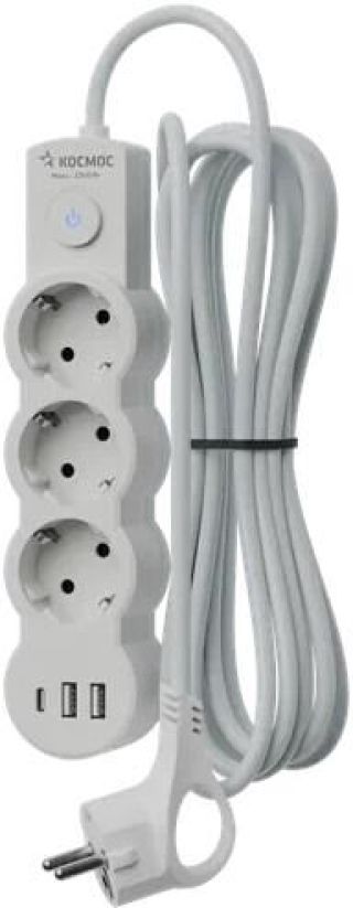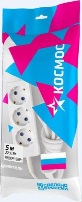 Удлинитель, количество розеток - 3 , максимальный ток нагрузки - 10 А , номинальное входное напряжение 220В, суммарная мощность нагрузки - 2,2 кВт, корпус из ударопрочного негорючего материала, материал контактов - латунь, долговечный кабель, длина кабеля - 5,0 м.