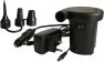 Размер: 9.6*8.8*9.5 см Материал: АБС-пластмасса Питание от розетки переменного тока или от прикуривателя Адаптер вход 220-240 В, 50/60 Гц, Макс 0.8А. Выход 12В, 2000 мАч Мощность 35 Вт. Класс защиты от поражения электрическим током II. Воздушный поток: 210 л/мин (12600 л/час) 3 сопла для установки на основные стандартные клапаны Удобен для использования в помещении и на открытом воздухе Быстро сдувает и надувает В комплект входят: 1 электрический насос, 3 насадки-сопла, шнур питания