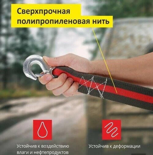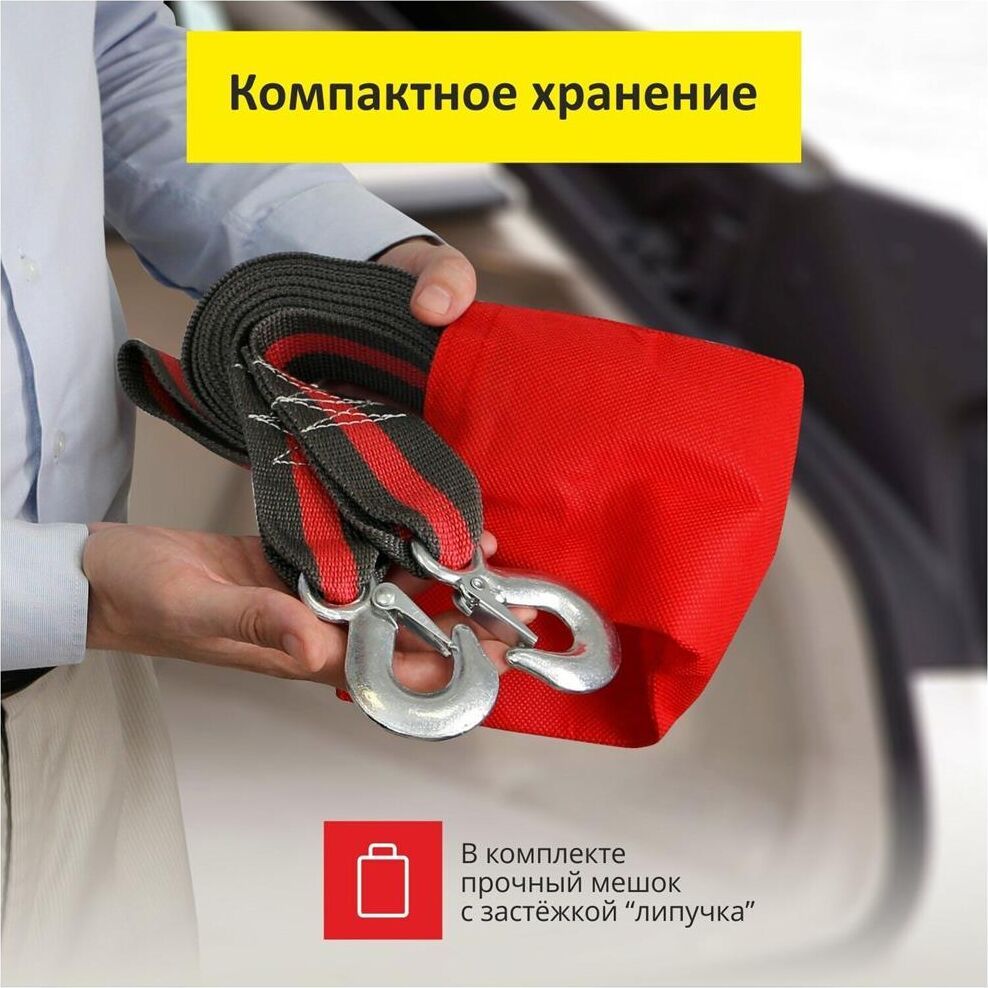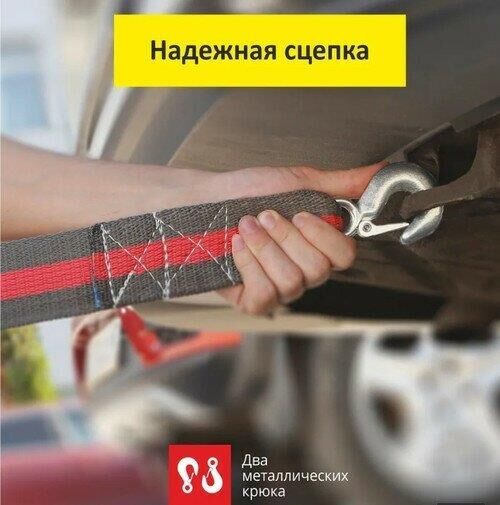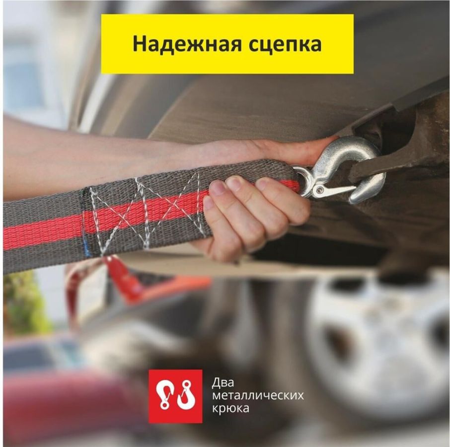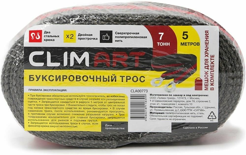 Трос буксировочный предназначен для перемещения автомобиля общей массой до 7 тонн. Длина: 5 м Цвет: серо-красный Материал: трос - полипропилен, крюки - сталь " Сверхпрочная полипропиленовая нить " Мешок в комплекте " Устойчив к воздействию влаги, нефтепродуктов " Морозоустойчив " Соответствует требованиям ПДД