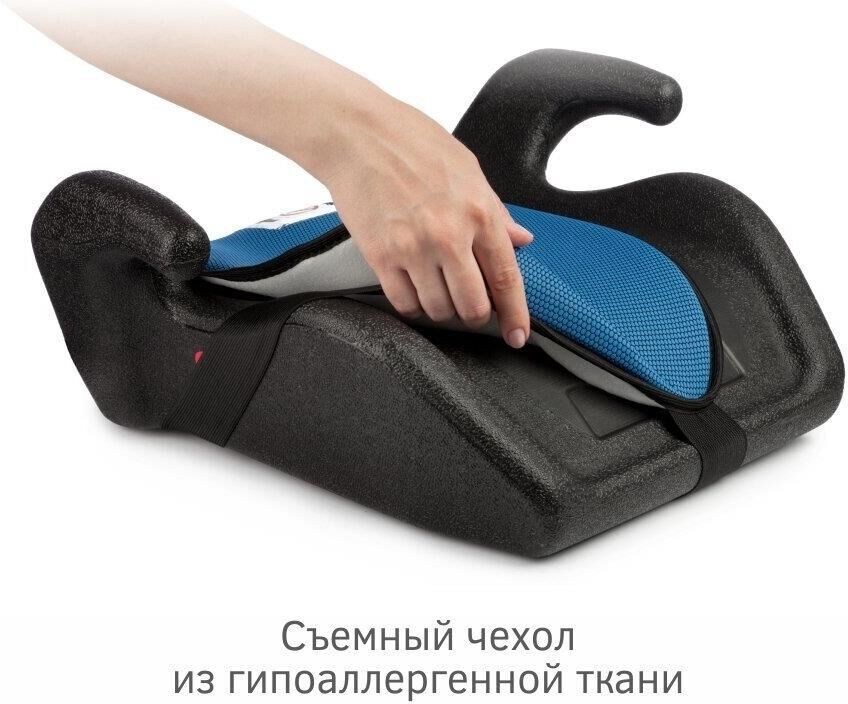 Износостойкий съемный чехол. Изготовлено из гипоаллергенных материалов. Ортопедическая форма сидения. Усиленный каркас. Соответствие европейским стандартам безопасности (ЕЭК ООН №44-04) и стандартам таможенного союза. Диплом «Доверие потребителей» 2013. Российское производство. Группа применения УУД 3. Вес ребенка 22-36. Возможность крепления штатным ремнем. Направление установки УУД По ходу движения. Тип УУД Бустер.