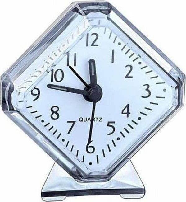 Материал корпуса: пластик; Форма: ромб; Размер: 75х85х30 мм; Тип механизма: кварцевый; Тип элемента питания: АА; Количество элементов питания: 1; Будильник: есть