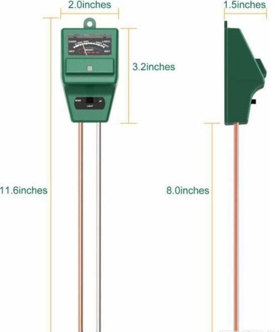 Помогает контролировать уровень РН почвы и достаточность освещения для растений. не требует батареек. можно использовать как внутри, так и вне помещения. размер: 28*5*3.5см. вес: 100гр.