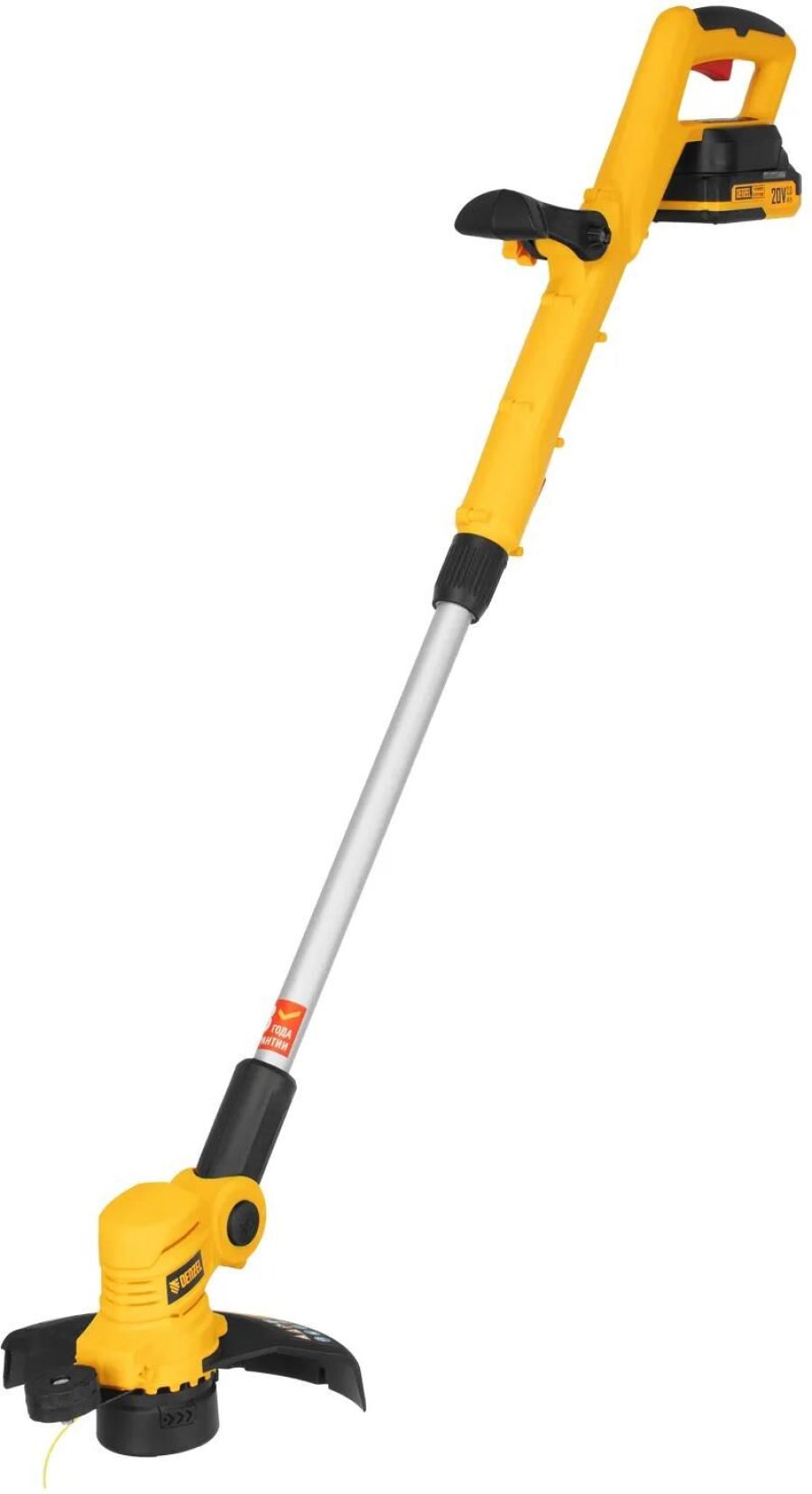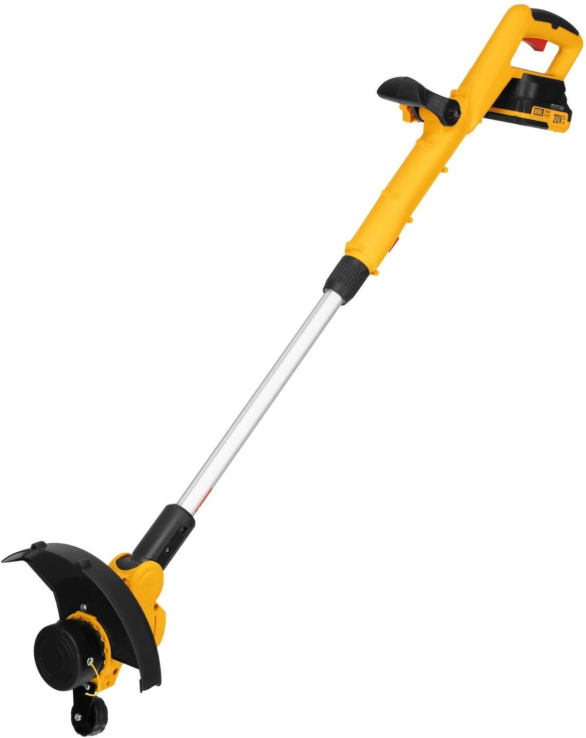 Основные характеристики Конструкция штанги - неразъемная Область применения - для садовых работ Режущий элемент - леска Тип аккумулятора - Li-Ion Тип двигателя - электрический щеточный Тип катушки - полуавтоматическая Тип ручки - D-образная Назначение - для покоса травы Время зарядки аккумулятора, ч - 3 Емкость аккумулятора, Ач - 2 Индикация и дисплеи - индикатор уровня заряда аккумулятора Максимальное число оборотов двигателя, об/мин - 8500 Напряжение аккумулятора - 20 В Номинальное напряжение, В - 20 Толщина лески, мм - 1.6 Уровень шума, дБ - 79 Функциональные возможности - изменения угла наклона головы Ширина скашивания для лески, мм - 230 Комплектация товара Триммер - 1 шт Дополнительная рукоятка - 1 шт Комплект крепежа - 1 шт Кожух защитный - 1 шт Опорное колесо - 1 шт Батарея аккумуляторная Power System - 1 шт Зарядное устройство - 1 шт Руководство по эксплуатации с гарантийным талоном - 1 шт