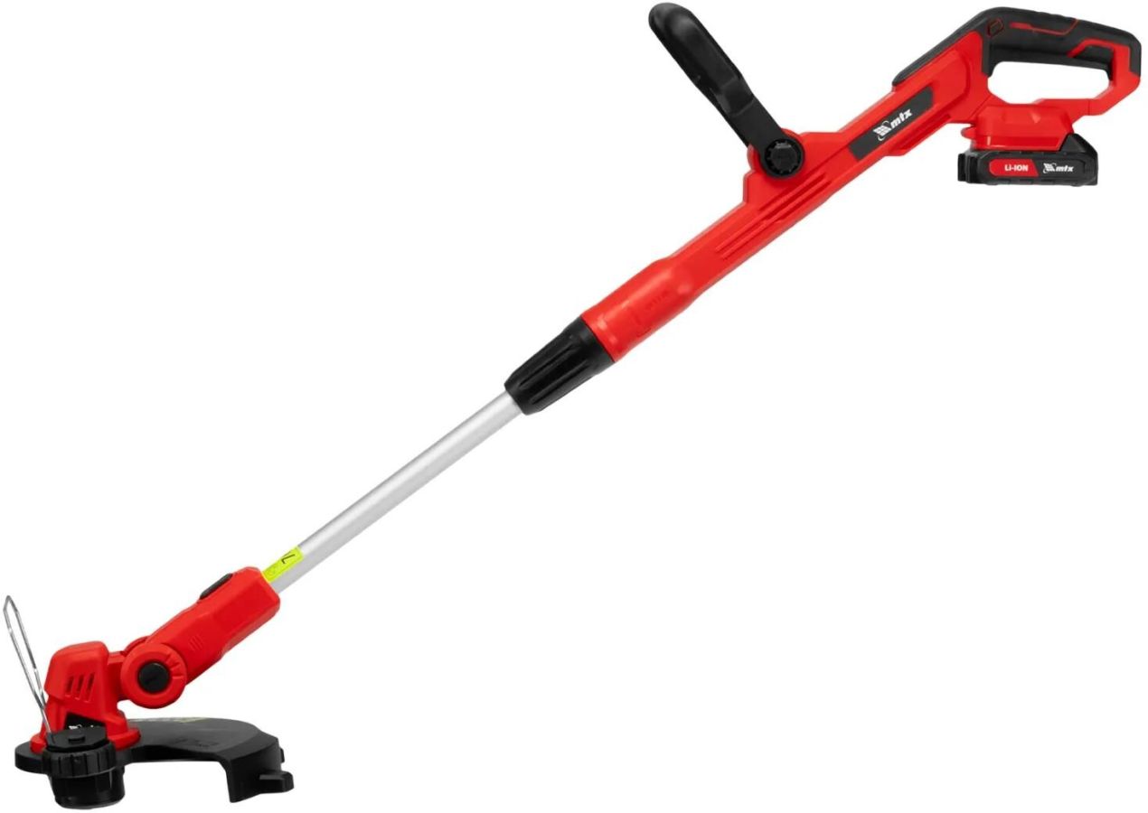 Основные характеристики Конструкция штанги - неразъемная Режущий элемент - леска Тип аккумулятора - Li-Ion Тип двигателя - электрический щеточный Тип катушки - полуавтоматическая Тип ручки - D-образная Время зарядки аккумулятора, ч - 1 Емкость аккумулятора, Ач - 2 Индикация и дисплеи - индикатор уровня заряда аккумулятора Максимальное число оборотов двигателя, об/мин - 8000 Напряжение аккумулятора - 20 В Номинальное напряжение, В - 20 Толщина лески, мм - 1.6 Уровень шума, дБ - 76 Функциональные возможности - изменения угла наклона головы Ширина скашивания для лески, мм - 300 Комплектация товара Триммер - 1 шт Комплект крепежа - 1 шт Кожух защитный - 1 шт Батарея аккумуляторная - 1 шт Зарядное устройство - 1 шт Руководство по эксплуатации с гарантийным талоном - 1 шт