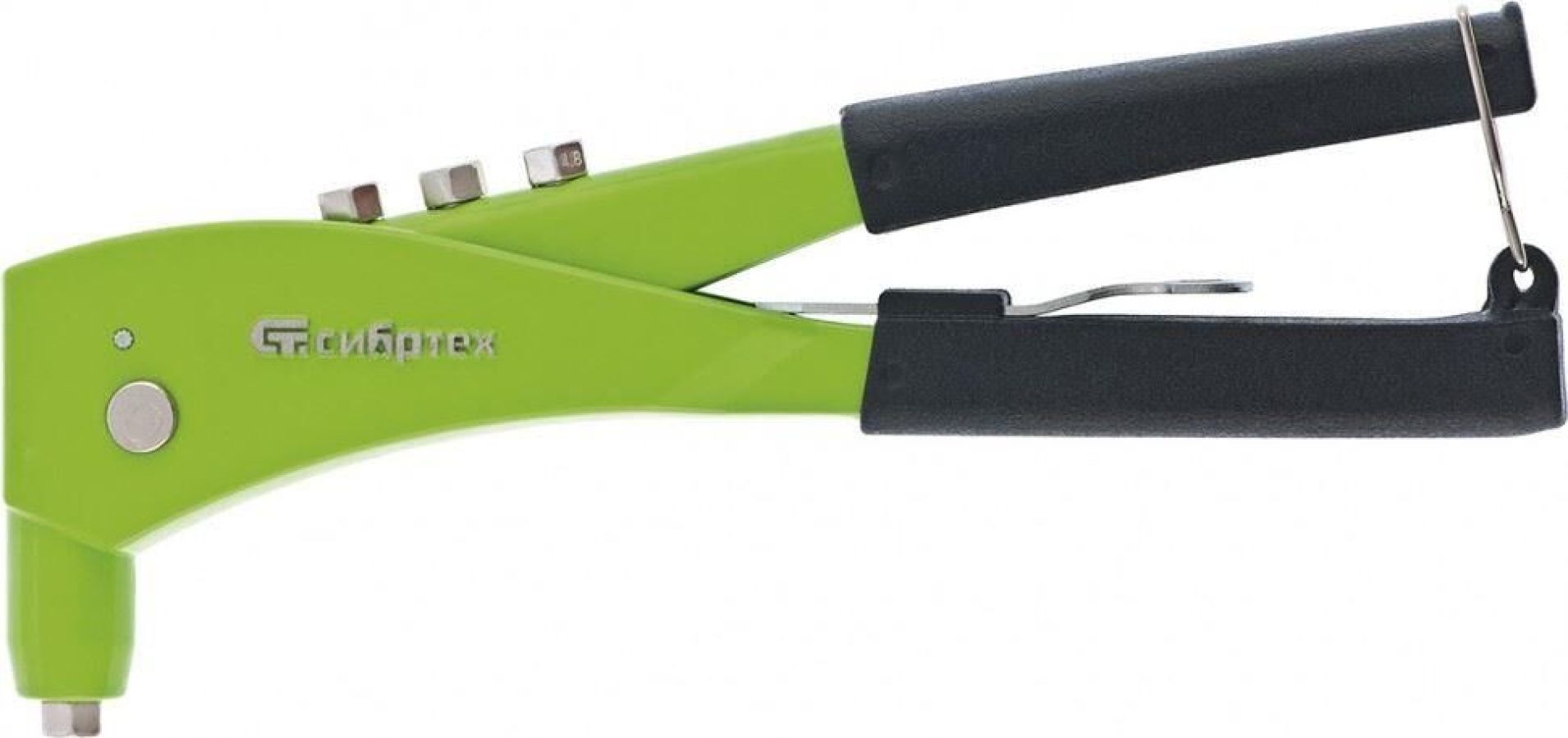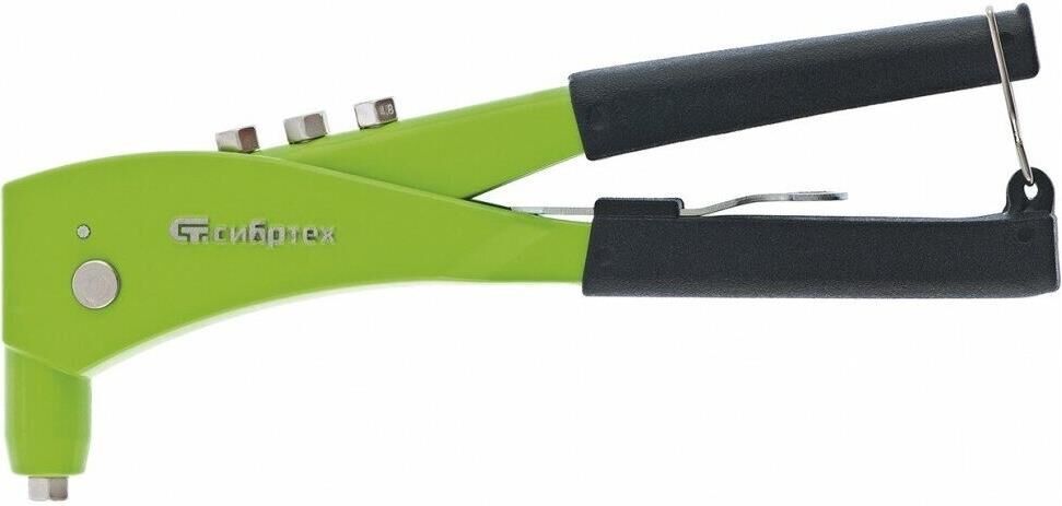 Заклепочник Сибртех 40545 длиной 250 мм с литым корпусом, пригодится для крепления листового металла вытяжными заклепками диаметром 2,4-3,2-4,0-4,8 мм. Он гарантирует долговечное и неразъемное соединение материалов. Заклепочник будет полезен профессиональным строителям и частным мастерам при возведении забора из профнастила, сборке металлоконструкций и других работах.ПреимуществаАккуратный литой корпус выполнен из алюминиевого сплава, выступающего залогом его надежности.Эмалевое покрытие защищает инструмент от образования коррозии.Рукоятки из ПВХ с имитацией под кирзу обеспечивают надежный хват и не проскальзывают в руках.Облегченный корпус весит всего 564 г, поэтому руки не устают в процессе работы.Металлическое кольцо удерживает рукоятки в закрытом состоянии для удобства хранения и транспортировки.В комплект входят 4 насадки под вытяжные заклепки разного диаметра и накидной ключ для их замены, а значит, их не придется покупать отдельно.